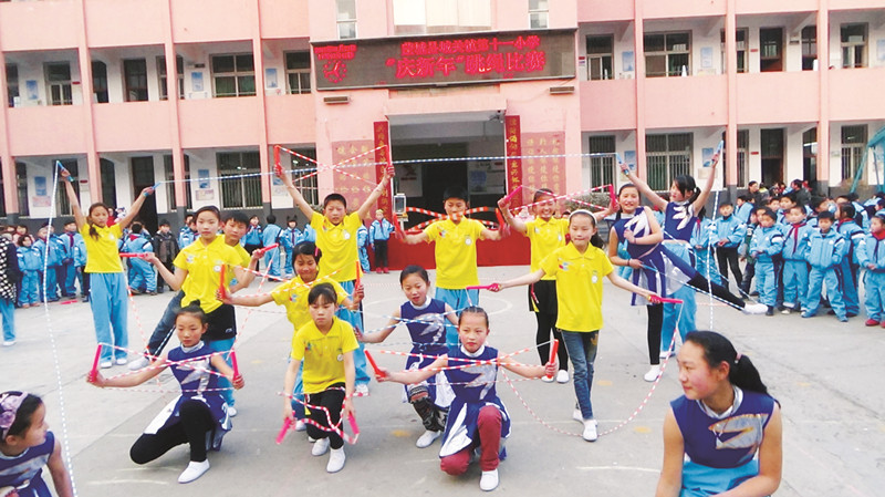 跳绳队教练王琼老师告诉小编,笑笑花样跳绳队成立于2014年5月。如今,十一小已是全校总动员,将跳绳玩出了“花”。王老师说:“和普通跳绳不同的是,花样跳绳不仅可以锻炼身体,还能增加观赏性。同时,它对同学们的团队意识的培养,也是功不可没的。”