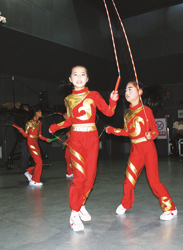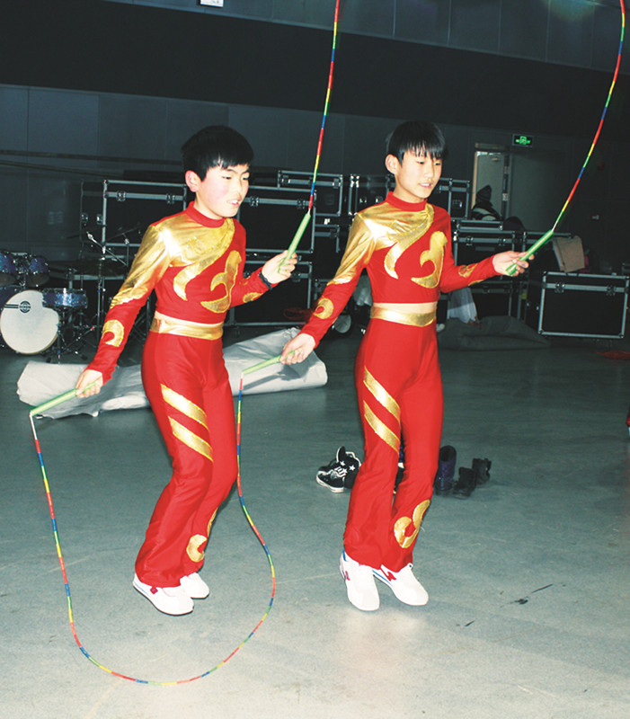 “大课间时间到,大家一起动起来吧!”在1月10日的全省猴年少儿春晚的录制现场,跳绳队的花样舞者们伴随着动感的音乐走上舞台,在舞动的跳绳间展示校园大课间的精彩。