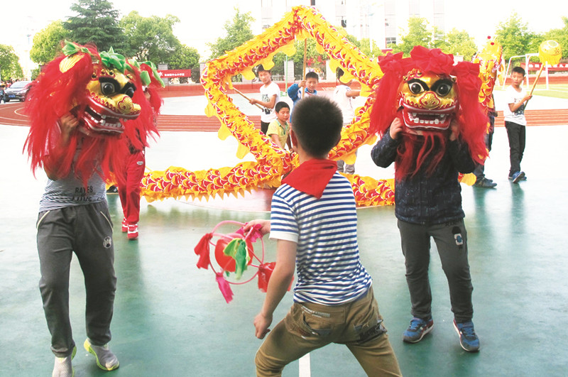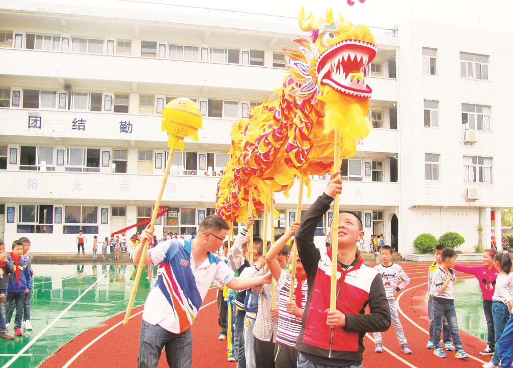 随着传承的重要性日益显现,一股“民俗文化热”也吹进了校园。去年3月份,奕棋镇中心小学涌现出一群“小龙人”,将有着千年传承历史的舞龙舞狮习俗带进了校园。学校请来了黄山学院民俗体育专业的李谋涛老师担任教学工作,并专门定制了轻巧易操作的龙。