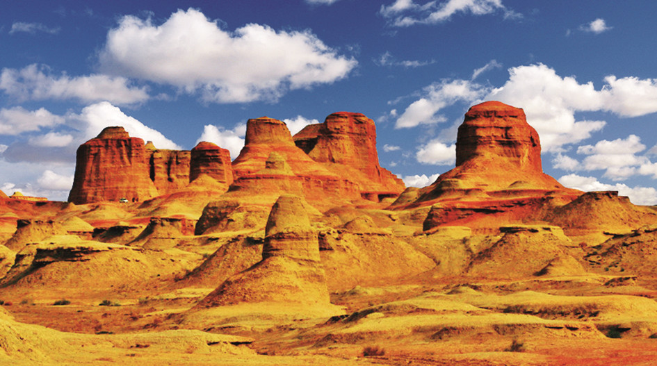 雅丹魔鬼城:主要分布于敦煌以西的戈壁深处和罗布泊河床中,是一种自然地貌,有的像城墙,有的像碉堡,有的像雕像,有的像长城。最长的土堆有十几公里长,里面错综复杂,像迷宫一样,一旦误入深处,很难找到出口。晚上在这个地方露营,还会听到千奇百怪的声音,故称为雅丹魔鬼城。