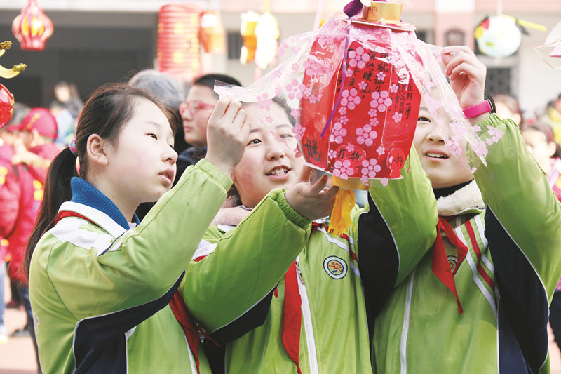 六(9)班 杨 锦:以前过元宵节,就是跟爸爸妈妈一起吃顿汤圆而已;现在才知道原来传统节日也可以形式多样且有意义。