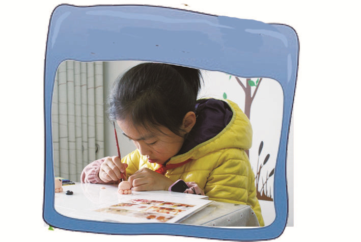 方子言:我的第一个作品是可爱的小熊。我将事先搓好的小圆和大圆捏成鸡蛋的形状,分别做小熊的头和身体,并用牙签穿起来,这样小熊的轮廓就出来了。然后,我又根据小熊的身体比例,做好了耳朵、眼睛、鼻子等。对了,还得给她戴朵小红花,这样才能更迷人呢!