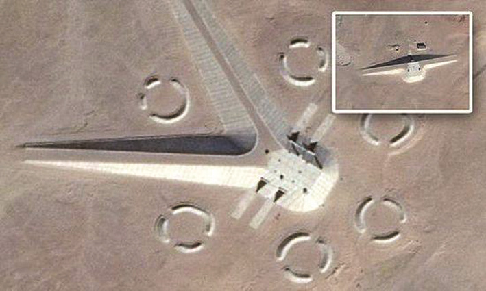谷歌地图在埃及首都开罗东部沙漠中拍摄到神秘的建筑群,该建筑群由两个细长建筑物和多个神秘圆圈组成,从空中俯瞰,外型古怪的建筑群似乎是一个太空基地,不是外星人造访吧?