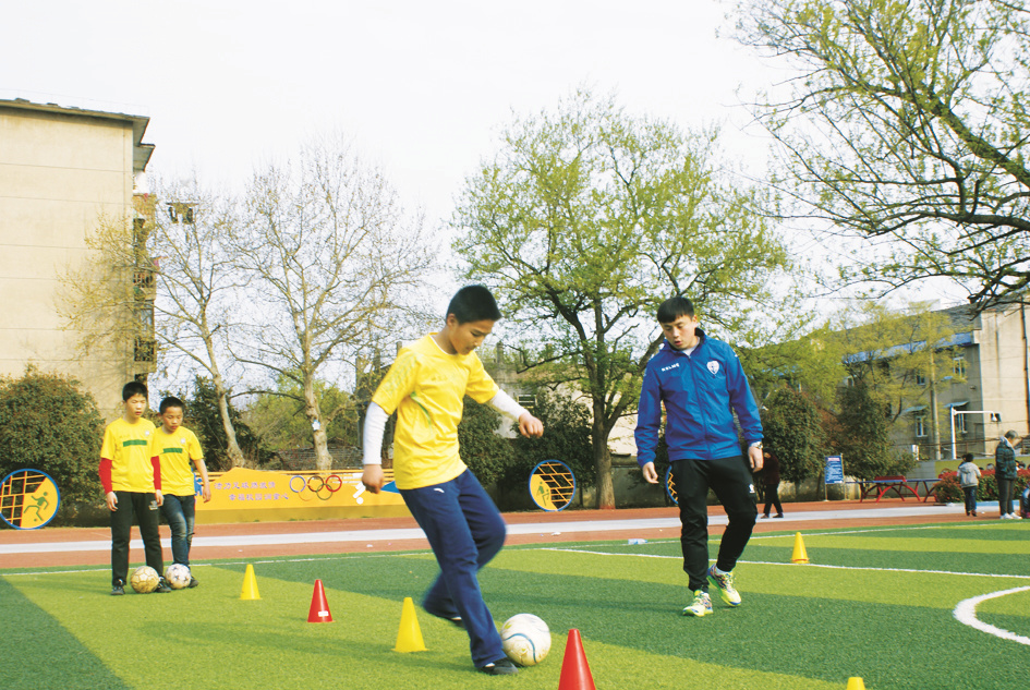 足球小将“出征”啦 近日,合肥市蚌埠路第三小学校园足球队的同学们再度“出征”啦!由合肥市教育局、市体育局联合主办的2016年合肥市青少年校园足球比赛于3月12日正式启动。此次比赛将历时数月,蚌三小20多名校园足球小将代表学校,加入小学组别赛事的比拼。 作为全国青少年足球特色学校,蚌三小多年来战绩不错,学校重点打造的校园足球文化也渗透到同学们的学习和生活中。为了加强足球小将们的实力,学校还专门聘请了专业教练,为足球队的同学们做指导。图为合肥市星际足球俱乐部丁震教练(右一)为同学们做示范。 本报记者 小 J 张 辉
