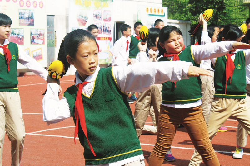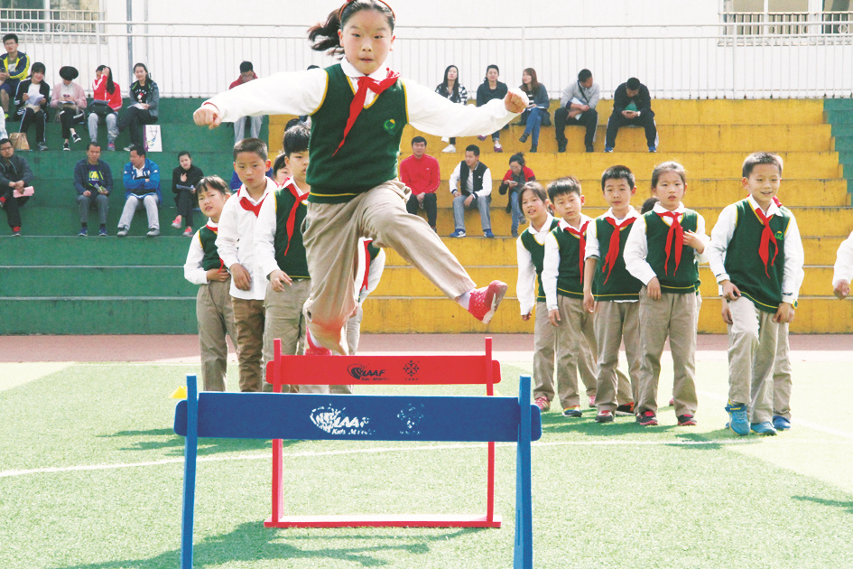 “让孩子们开开心心地锻炼身体——”便是潜校引进少儿趣味田径项目的初衷。据了解,传统的田径项目因安全等因素的制约,大多不适合少儿学习;趣味田径运动则是由国际田联创编并推广的,新的包含走、跑、跳、投等形式的田径运动。潜校是省田径传统项目学校,于2015年引入国际田联少儿趣味田径项目。将近一年的时间,越来越多的学生喜欢上了田径运动。三(7)班王宇涛从小就爱跨障碍物,门槛、栅栏……只要有高度的东西,他都喜欢跑着跨过去。不过,这样的动作太危险,经常被大人制止。现在的体育课有了跨栏这一项,栏杆是海绵做的,同时可以自由调节高度,王宇涛已然练成了一名跨栏“飞人”!跟王宇涛钟情于跨栏不同,陶雨婕更喜欢每样器械都能玩——绕杆、前滚翻、投标枪等。