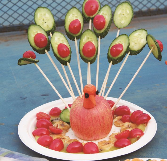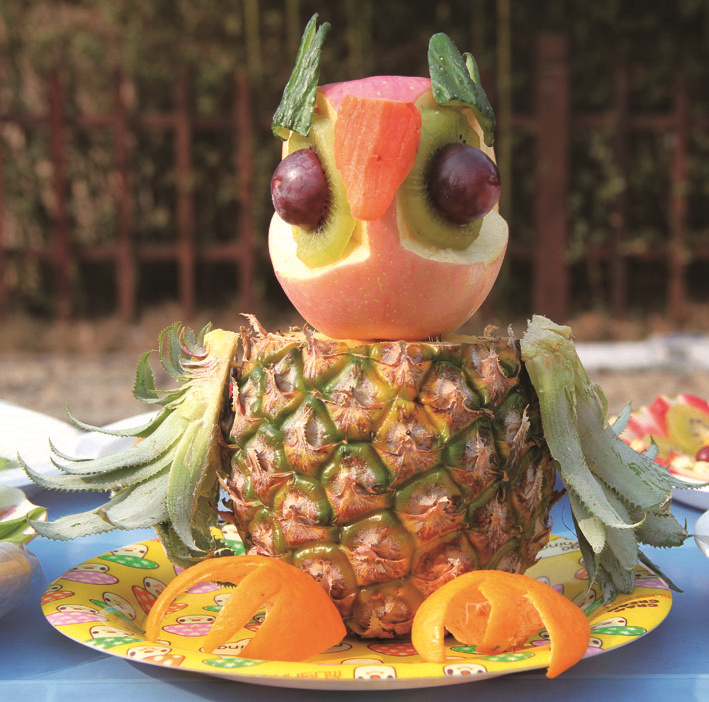 施肥是有讲究的,适量的肥料能让农作物健康生长,一旦过量,就会“烧死”农作物。这是采菊中队“小地主”周涵菲的种植经,如何判断农作物是否需要施肥,她还另有高招,“主要是通过观察,看植物的叶子是否有斑点,长得是否比别的植物慢。” 采菊中队:五(6)班 周涵菲 桑梓兰 鲁艺萌 Part3:“蔬菜水果”变变变 这么有创意!