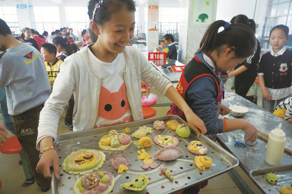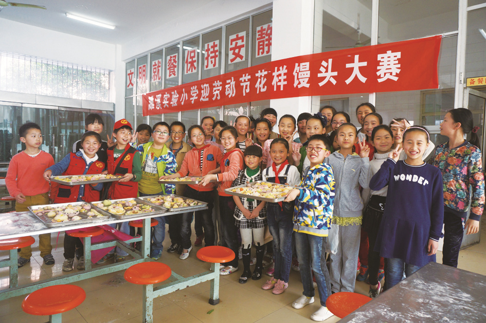 “剪刀,剪刀,快!”“把绿豆给我!”“擀面杖快用,我还要用呢!”你一定很好奇,这是在干什么呢?告诉你吧,在濉溪县实验小学的食堂里,开展了一场充满趣味的花样馒头大赛。看到同学们各种造型奇特的馒头,你是不是对劳动充满了热情呢!