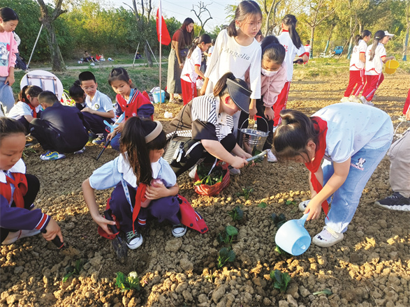 凤阳县实验小学 劳动教育出校园 □石永清 陈先声 近日,凤阳县实验小学三年级近200名学生来到明中都皇故城国家考古遗址公园学校劳动教育实践基地开展种植活动。活动中,同学们分工明确,互相合作,有的除草,有的挖坑,有的放种子,忙得不亦乐乎,同学们在此次活动中,体会了劳动的喜悦,体验了劳动的艰辛。
