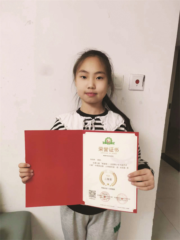 每个人都有自己的优点和缺点,以前,我偶尔会因为自己的一些小缺点而感到失落,但渐渐地,我发现了自己的兴趣和优点:我擅长书法,喜欢画画。在意识到这些后,我开始努力地练习书法、绘画,让自己的优点发挥出来,让童年变得更加美丽。 要想取得进步,不仅需要日常的练习,还需要各类比赛的历练。这些年,我参加了大大小小的考级和比赛。目前我已经获得书画等级考试色彩四级证书,通过了社会艺术水平考级(拉丁舞专业)二级考核。在第四届美院之路全国青少年美术创作征稿暨“美丽乡村”主题系列活动中获得综合艺术类作品二等奖,在第七届“希望颂——全国青少年书画艺术大展”中获得水彩画类二等奖。这些经历扮靓了我的童年,也让我变得更加自信。