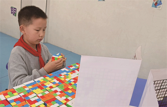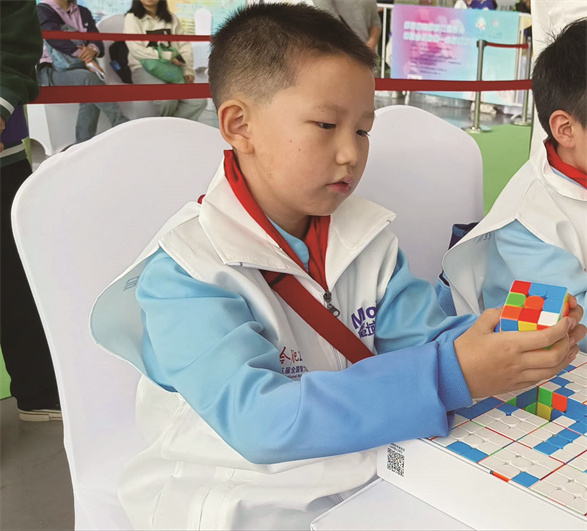 我刚上一年级的时候,看见电视里拧魔方的大哥哥、大姐姐都能在很短的时间内复原魔方,便想像他们一样玩转魔方。在妈妈的帮助下,我开始了解各种魔方的公式并努力练习。功夫不负有心人,我在魔方中玩出了成绩,也玩出了自信。在今年2月的合肥市魔方大赛中获得一等奖和二等奖各一项,在10月的第五届全国智力运动会全国魔方比赛中获得团体赛一等奖、三阶魔方个人赛三等奖。