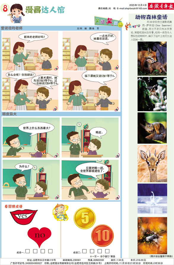 《安徽青年报·学生周刊》励志启智,开阔视野,净化心灵,陶冶情操,参与互动,集新闻性、知识性、趣味性、互动性为一体,是小学生成长的良师益友、参与互动的平台、沟通老师家长的纽带。