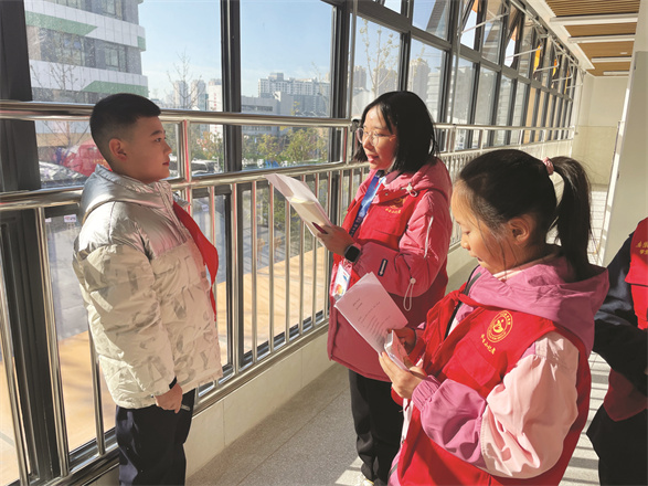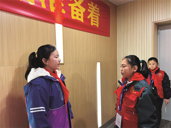 本次参会的还有来自各个学校的少先队员代表,学生记者自然没有错过这个交流的机会,他们互相敬队礼,时刻不忘自己少先队员的身份。“请问参加本次少代会,你们内心有着怎样的感受呢?”杜雅彤与来自元一名城小学的迟乐妍、张涵同学交流道。“能够参加少代会,当然是感到十分荣幸的。我们今天大有收获,未来会更积极地参加少先队活动,提升自身素质,不辜负少先队员的光荣称号!”