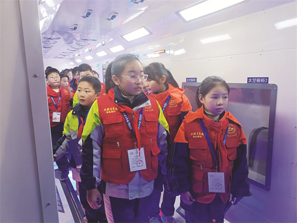 “这里除了工作区,居然还有锻炼区、休息区和卫生间,原来宇航员是在这样的环境中工作和生活的,真的太神奇了!”来自永安小学的徐杨果儿激动地说道。