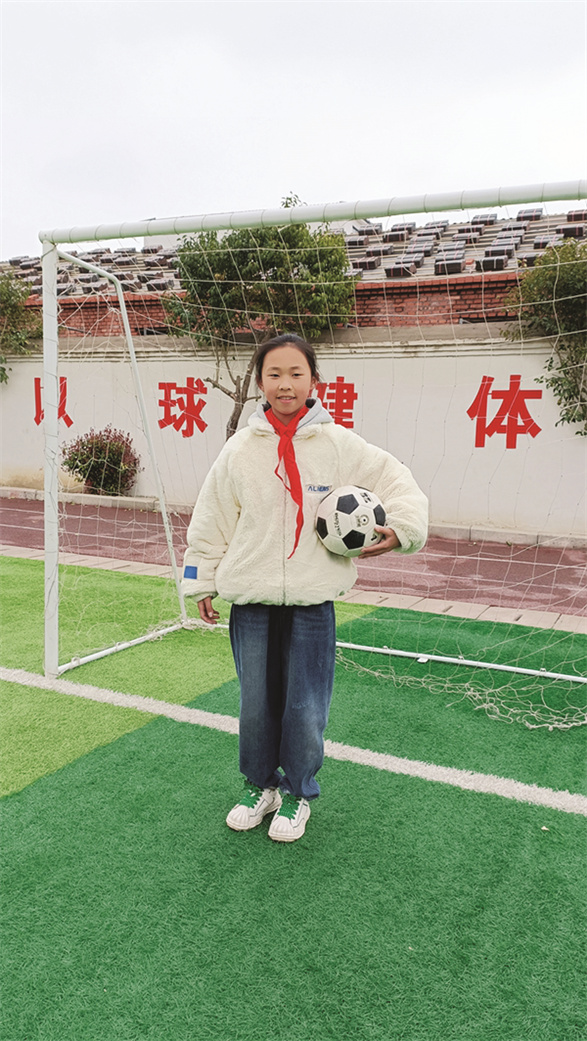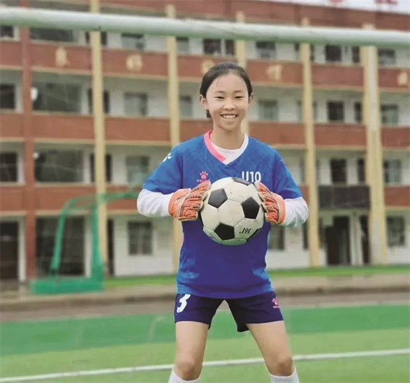 张亦涵酷爱足球,加入校足球队的她,自告奋勇担任守门员。在训练的过程中,手肘、膝盖擦伤是难以避免的,在她眼里,这些似乎就是“家常便饭”,她从不抱怨。