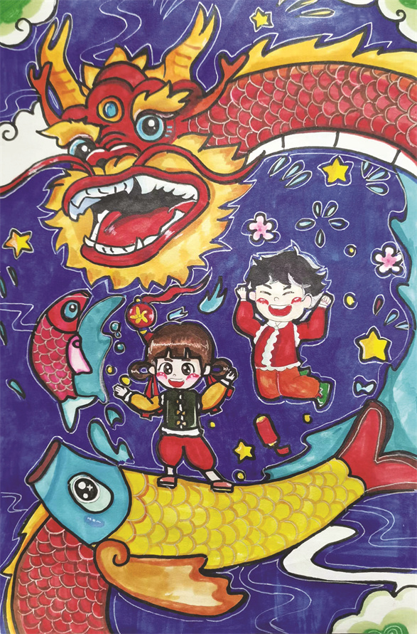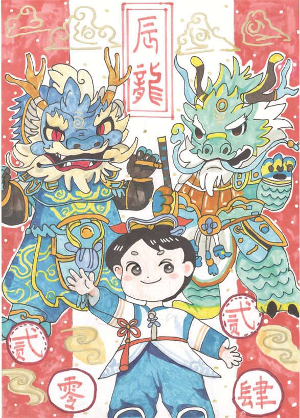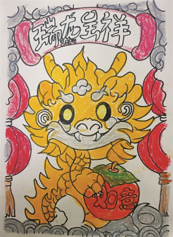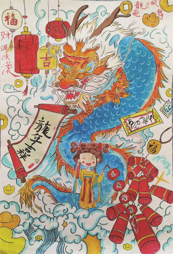 龙,中国古代神话中的神兽,是中华民族的象征之一。自古以来,龙在中华儿女的心目中就是祥瑞的象征。它能腾云而飞,幻化变形,呼风唤雨,是操控天气、掌管水域的神兽!新年之际,同学们用画笔共同展现龙的风采,龙的气势,传承龙的精神,让我们一起欢欢喜喜迎龙年!