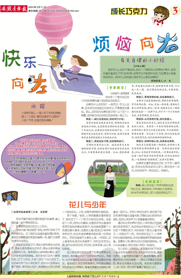 蒋静:砀山县实验小学祥和路校区教导处主任,高级教师,学校兼职心理教师,2016年获得国家三级“心理咨询师证书”。