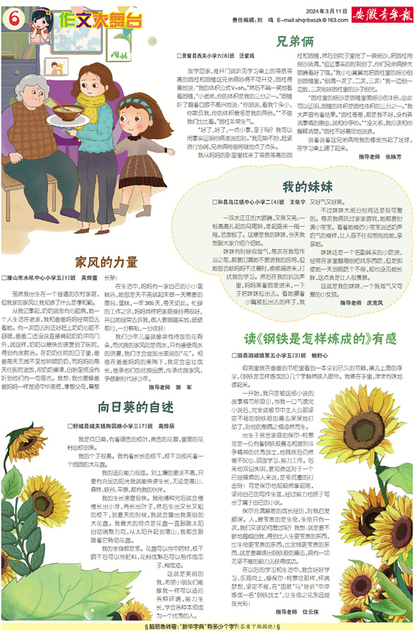 《安徽青年报·学生周刊》励志启智,开阔视野,净化心灵,陶冶情操,参与互动,集新闻性、知识性、趣味性、互动性为一体,是小学生成长的良师益友、参与互动的平台、沟通老师家长的纽带。