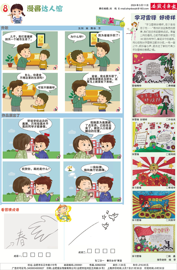 《安徽青年报·学生周刊》励志启智,开阔视野,净化心灵,陶冶情操,参与互动,集新闻性、知识性、趣味性、互动性为一体,是小学生成长的良师益友、参与互动的平台、沟通老师家长的纽带。
