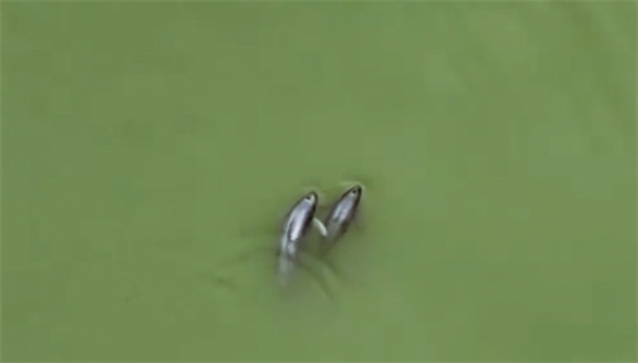 江豚组团春游 近日,湖南湘江湘阴段,20多头江豚水里嬉戏。它们时而翻滚追逐,时而跃出水面,灵活自在,十分欢乐。