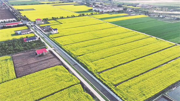 油菜花田埂如金色画框 近日,湖南省益阳市大通湖区13.8万亩油菜花竞相绽放,金色的油菜花田埂如画框般,将阡陌纵横的鱼塘、蟹塘、虾塘镶嵌其中,勾勒出一幅梦里水乡的生态画卷。