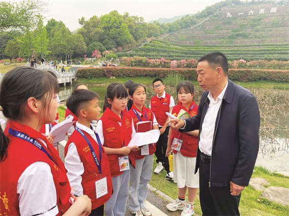 胡久松感谢大家对家乡发展的关注,并耐心解答:“我们通过充分挖掘茶文化资源,举办茶文化活动……”“那小学生能为家乡的发展做什么呢?”听完介绍,学生记者田梦琪问道。胡久松期望作为学生的他们能以学习为己任,在平时实践活动中能多走入农村,深入了解农村、农业发展,同时增强体魄,长大才能更好地建设家乡、报效祖国。
