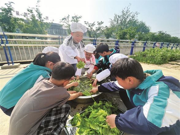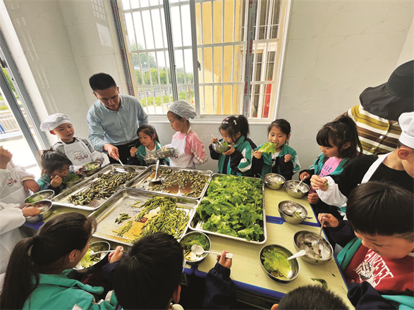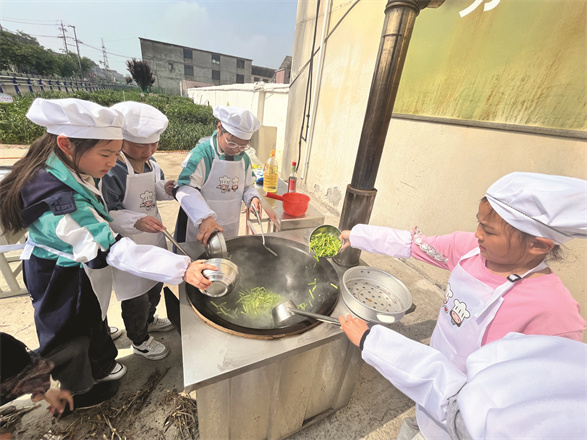 新闻风向标 阜阳市颍东区正午镇督学责任区中心小学 共享美好“食”光 □张 素 劳动最光荣,为引导同学们养成热爱劳动的良好习惯,在“五一”劳动节前,阜阳市颍东区正午镇督学责任区中心小学开展了丰富多彩的劳动教育实践活动,一起来看看镜头下同学们的“劳动之美”吧! 撸起袖子,摘菜去 大地上有课堂,田地间有学问。活动当天,同学们兴致勃勃地来到学校的菜园。在老师的带领下,他们学习了如何识别不同种类的蔬菜,如何正确采摘,以及如何保护菜园的环境。同学们兴奋地穿梭在菜园间,小心翼翼地采摘着自己心仪的食材。“三月份的时候,我还和其他同学一起撒种子,然后施肥。现在菜长大了,我们可以采摘了。采摘的时候,我感觉到心里有一种收获的喜悦。我在种菜、采摘菜的过程中,体会到了农民伯伯的辛苦之处。”四(3)班尹瑞雪说道。 巧手烹饪,开饭啦 采摘结束后,同学们开始了烹饪的过程。在老师的指导下,同学们学习了剥菜、洗菜、炒菜等基本技能,尝试将刚刚采摘的食材变成一道道美味的菜肴。 虽然同学们的动作还不够熟练,但他们的认真和热情让在场的每一个人都为之动容。这种用心和专注,让他们深刻体验到了劳动的价值。同时,也让同学们更加珍惜食物,懂得了每一餐都来之不易。 经过一个多小时的努力,同学们终于完成了自己的作品。一道道菜肴被端上了餐桌,同学们围坐在一起,品尝着自己的劳动成果。他们的脸上洋溢着自豪和满足的笑容。四(1)班王雨馨就说:“在做饭的过程中,我学会了如何调配食材,如何掌握火候,这些都是我以前从未接触过的,发现自己越来越擅长做饭,也越来越享受这个过程。” 收获满满,来分享 的确,活动不仅让同学们学会了采摘和烹饪的基本技能,更让他们体会到了劳动的意义和价值,感受到了劳动的乐趣。很多人在活动后分享了自己的心得体会。 一(3)班 王语萌:活动让我觉得自己就像一个真正的厨师,在做饭的时候,我觉得我的妈妈和奶奶在家里做饭真不容易,我以后应该多帮帮她们。 四(2)班 马伊诺:每一次的翻炒、每一次的搅拌,都需要我全神贯注,才能做出美味的菜肴。虽然过程有些辛苦,但当我看到其他同学们满意地享用我做出的美食时,那种满足感真的无法用言语来表达。 五(1)班 王 妍:做饭让我体会到了团队合作的重要性,分工合作的方式不仅提高了效率,还让我们之间的关系更加紧密。我觉得这种体验对我的学习和生活都有很大的帮助。