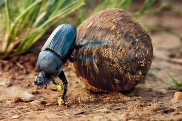 屎壳郎是蜣螂的俗称,是一种强壮的甲虫,成虫能拉动相当于自身体重1141倍的重物。一坨大象的粪便,它们要往来无数遍将其大部分埋入自己的地下储藏室中。为了确保食物的“新鲜”,小小的屎壳郎不敢懈怠,在非洲的大草原上哼哧哼哧循环忘我地工作。