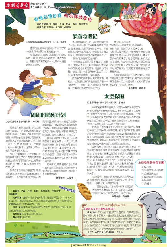 注意:来稿请注明“擂台参赛作品”字样,写清学校、年级、班级、姓名、指导老师以及联系电话。