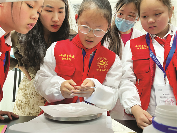 “快看,小瓶子浮起来了。”“亲眼见识了‘滴水成冰’,真是太神奇了!”……5月8日下午,来自本报的16名学生记者代表走进合肥中科健康生物产业技术研究院有限公司(以下简称中科健康研究院),通过参观科普展厅、参与科学小实验、聆听科学公开课、与科学工作者近距离对话等形式,学生记者深入了解科研工作,探索自然科学的奥秘,在实践中进一步激发了大家对科学的探究兴趣。