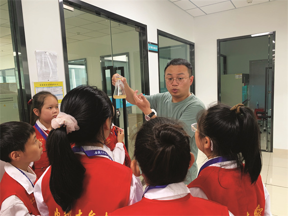 合肥市屯溪路小学滨湖校区校长 聂传荣:科学探究和实验能力是青少年重要的素养之一,屯小滨湖的学生记者们在采风活动中近距离接触一线研发实验室,不仅开拓了视野,增长了见识,还激发了他们的科学思维能力和探究精神。