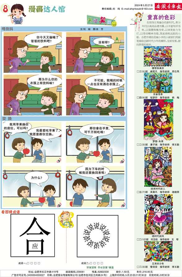 《安徽青年报·学生周刊》励志启智,开阔视野,净化心灵,陶冶情操,参与互动,集新闻性、知识性、趣味性、互动性为一体,是小学生成长的良师益友、参与互动的平台、沟通老师家长的纽带。