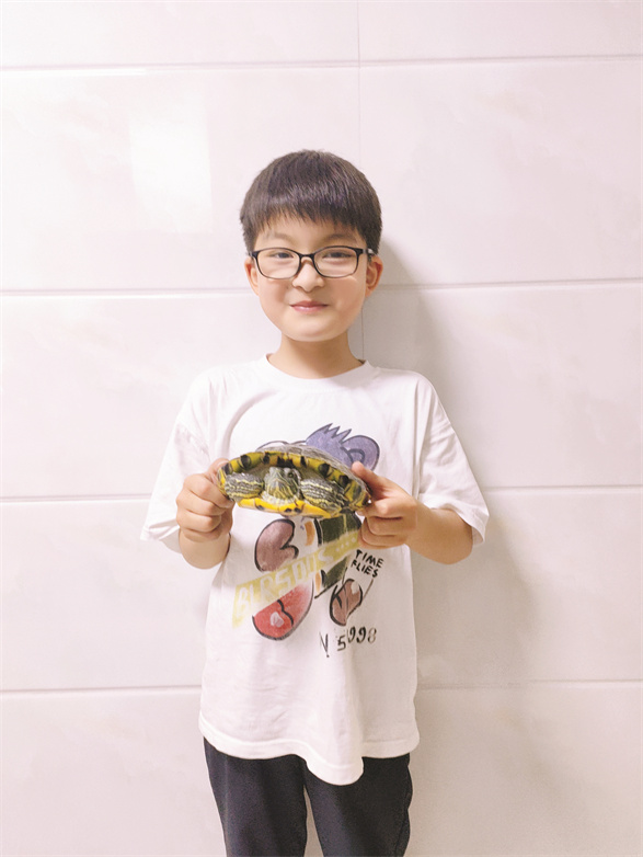 我家有一只小乌龟,它已经陪伴我八年啦!它小小的脑袋上顶着两只小眼睛,四处乱看,对这世界充满了好奇。它喜欢直立着趴在鱼缸的玻璃壁上发呆,或者趴在那里一动也不动。我想它肯定是在看一个新奇的地方吧!它从不冬眠,反而很活跃,每当我把它放到地面上,它先是害怕得一动不动,慢慢地它把小脑袋探出来,再把四肢和尾巴伸出来,慢慢地爬着,然后它变得调皮了,速度越来越快,我都抓不住它了。这就是我的童年伙伴,一只可爱的小乌龟。