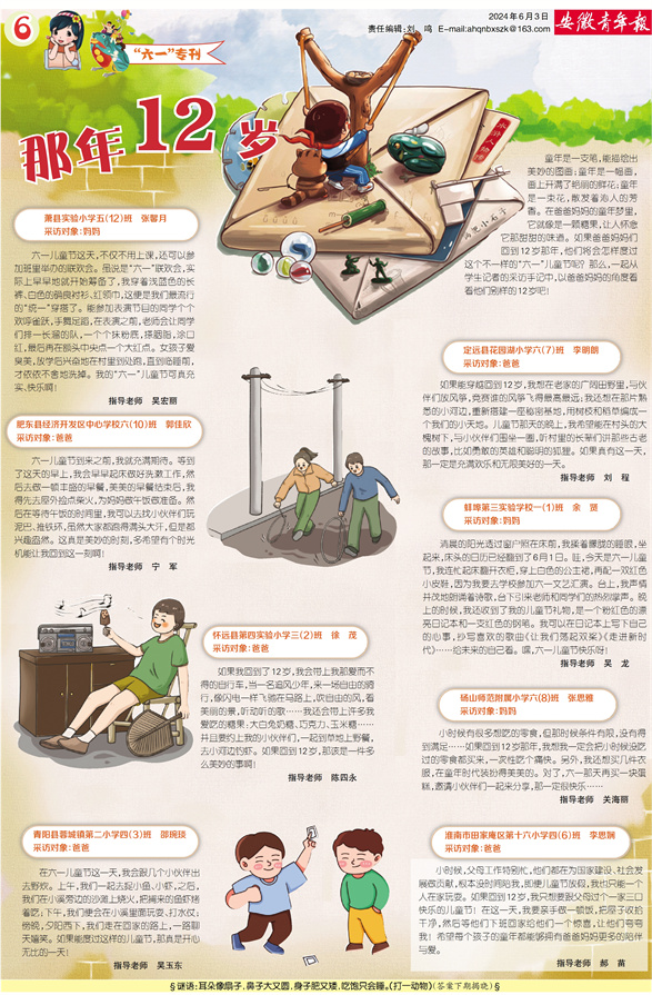童年是一支笔,能描绘出美妙的图画;童年是一幅画,画上开满了艳丽的鲜花;童年是一束花,散发着沁人的芳香。在爸爸妈妈的童年梦里,它就像是一颗糖果,让人怀念它那甜甜的味道。如果爸爸妈妈们回到12岁那年,他们将会怎样度过这个不一样的“六一”儿童节呢?那么,一起从学生记者的采访手记中,以爸爸妈妈的角度看看他们别样的12岁吧!