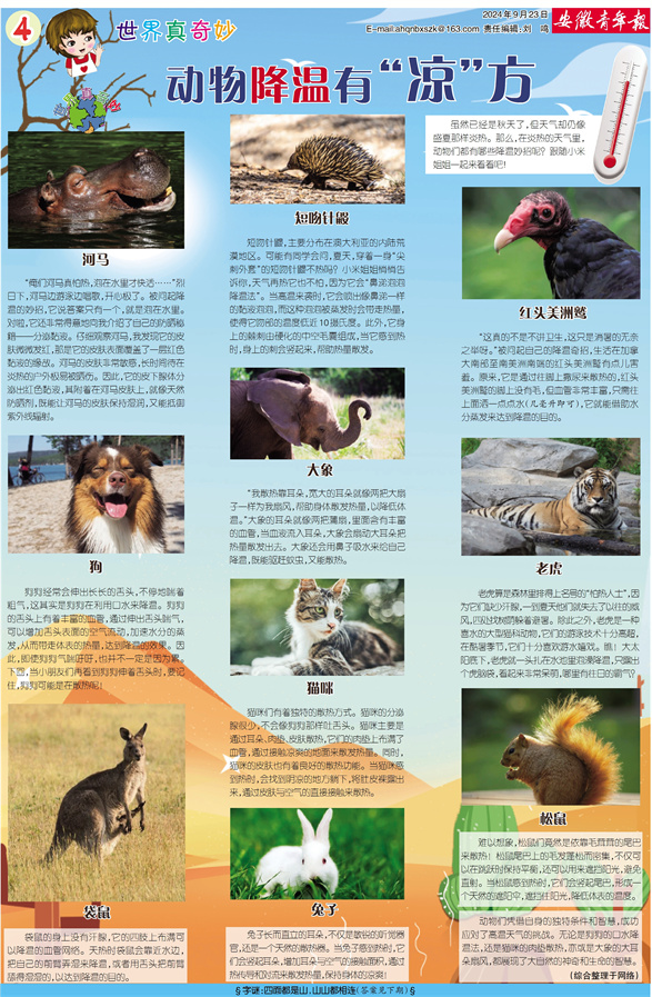 虽然已经是秋天了,但天气却仍像盛夏那样炎热。那么,在炎热的天气里,动物们都有哪些降温妙招呢?跟随小米姐姐一起来看看吧!