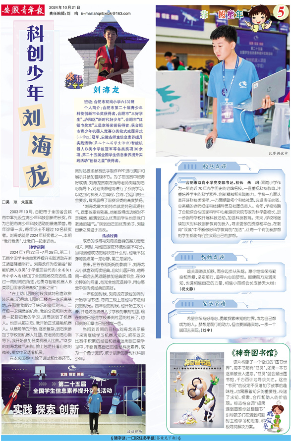 《安徽青年报·学生周刊》励志启智,开阔视野,净化心灵,陶冶情操,参与互动,集新闻性、知识性、趣味性、互动性为一体,是小学生成长的良师益友、参与互动的平台、沟通老师家长的纽带。