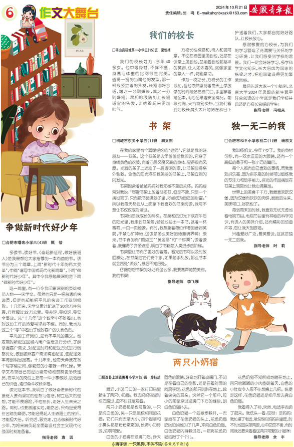 《安徽青年报·学生周刊》励志启智,开阔视野,净化心灵,陶冶情操,参与互动,集新闻性、知识性、趣味性、互动性为一体,是小学生成长的良师益友、参与互动的平台、沟通老师家长的纽带。