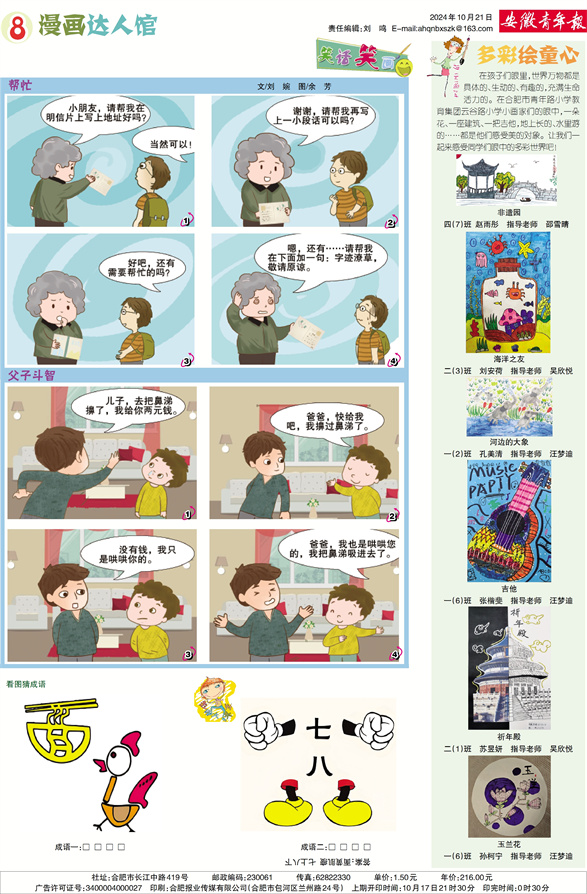 《安徽青年报·学生周刊》励志启智,开阔视野,净化心灵,陶冶情操,参与互动,集新闻性、知识性、趣味性、互动性为一体,是小学生成长的良师益友、参与互动的平台、沟通老师家长的纽带。
