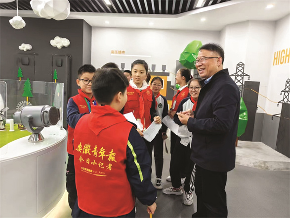 之后,大家还采访了团合肥市庐阳区委副书记张燚、合肥市南门小学党委书记费广海、合肥市第四十五中学橡树湾校区科技负责人宋蓓蓓,合肥市青少年科技创新教育学会执行会长童宗兵、阜阳师范大学中小学科学教育专业负责人黄银生以及学生代表等,他们分别从不同的角度阐述了科学教育的重要性,并分享了自己对科学发展的理解和体会。张燚阿姨说:“看到你们这么热爱科学,我感到很高兴。希望你们能继续保持这份热情,努力学习,为未来的科创事业贡献力量。”宋蓓蓓阿姨也鼓励大家:“你们今天的表现很棒!希望你们能继续关注科技动态,为传播科学知识做出贡献。”童叔叔寄语大家:“我希望通过这些活动,让青少年爱上科学,为科创事业打下坚实的基础。”