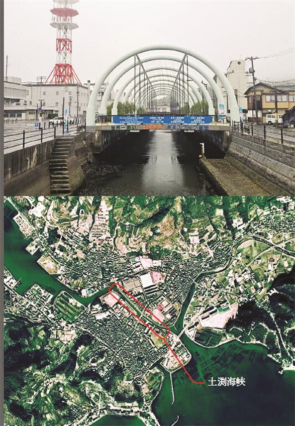 海峡是因海水长期侵蚀地峡裂缝或海水淹没陆地低凹处而形成的,位于大陆或岛屿之间。土渕海峡看起来就像一条大水沟,但它的成因与海峡一样,中前岛和小豆岛之间的地层陷落、海水上涨,形成了这条分割两岸的海峡。