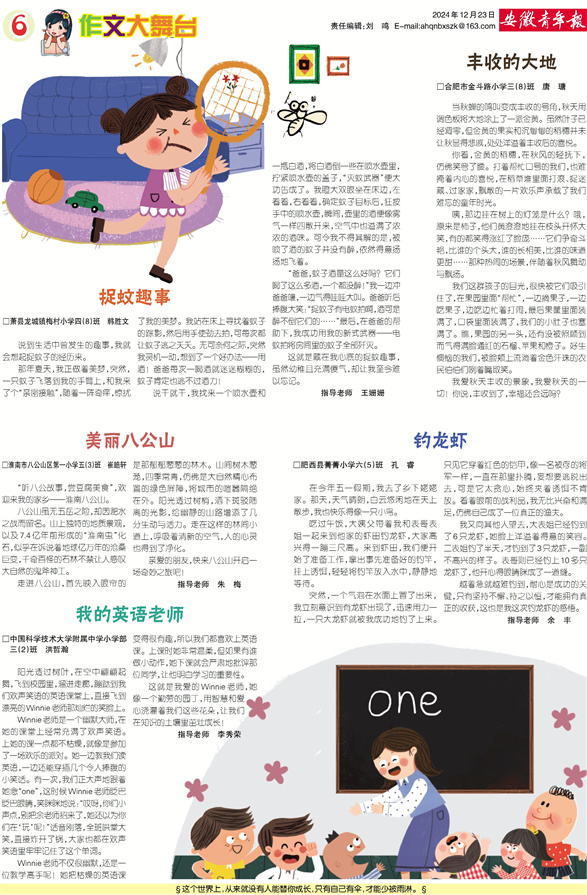 《安徽青年报·学生周刊》励志启智,开阔视野,净化心灵,陶冶情操,参与互动,集新闻性、知识性、趣味性、互动性为一体,是小学生成长的良师益友、参与互动的平台、沟通老师家长的纽带。