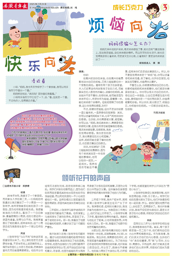 琪琪,你知道吗?巧克力姐姐真的很羡慕你,因为有个弟弟其实是一件很幸福的事情呢,他可以陪你一起玩,一起成长。虽然他现在可能还不懂事,但将来你们会是彼此最亲的人。所以,你不要总觉得弟弟是个“麻烦”啦,你可以试着多和弟弟沟通,多了解他,也许你会发现,他其实很可爱呢,也值得你去爱护。