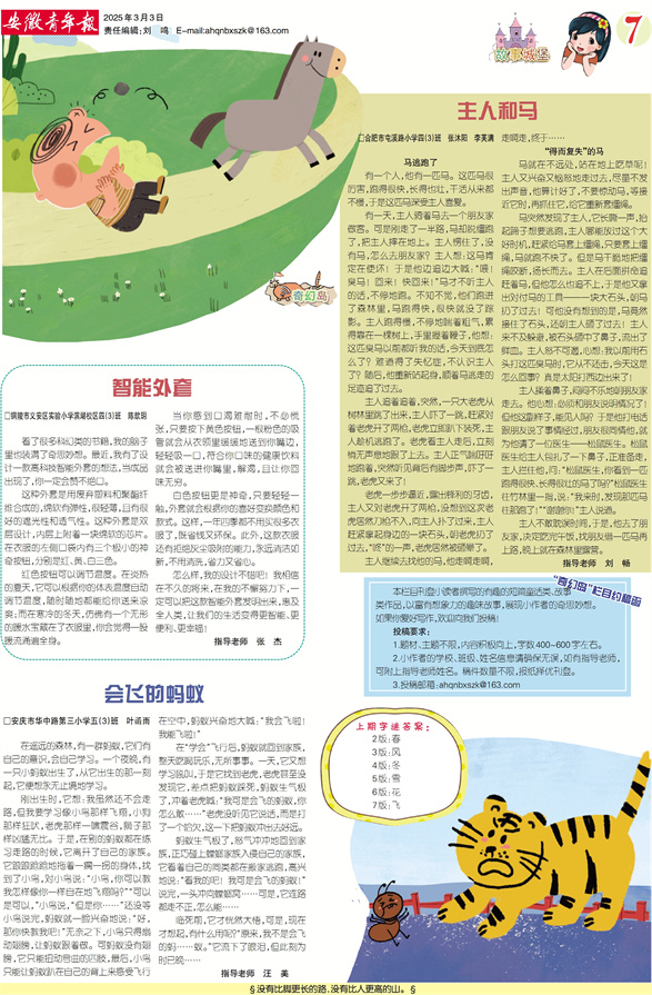 《安徽青年报·学生周刊》励志启智,开阔视野,净化心灵,陶冶情操,参与互动,集新闻性、知识性、趣味性、互动性为一体,是小学生成长的良师益友、参与互动的平台、沟通老师家长的纽带。