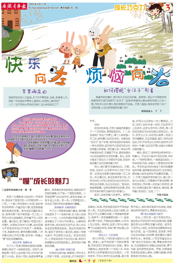 时间如白驹过隙,转眼间小可已步入三年级下学期。此时的她,已不再是那个孤僻的小女孩,而是班级活动中不可或缺的一员。无论是运动场上的奋力奔跑,还是艺术节上的精彩表演,小可都能积极参与,虽然不一定是最耀眼的那一个,但她那份勇于尝试、不畏挑战的精神,让所有人为之动容。我深知,这是小可内心深处勇气与自信的体现,是她“慢”成长路上的一次华丽蜕变。