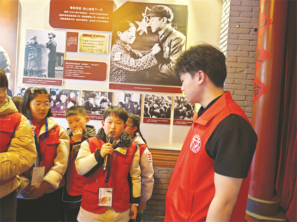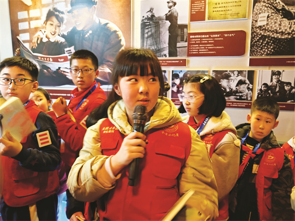 在“雷锋故事”展区,大家被雷锋叔叔“出差一千里,好事做了一火车”的感人事迹深深打动;在“雷锋日记”展区,同学们认真阅读雷锋叔叔的日记摘抄。看到纪念展墙上雷锋叔叔在“天安门前的誓言”,队员们情不自禁朗读起来:“天安门,我会再来的。再来时,我一定要做出大成绩。争取在天安门城楼上,跟毛主席一起照张相。”雷锋对党和人民的无限忠诚深深地感染着在场的每一个人。