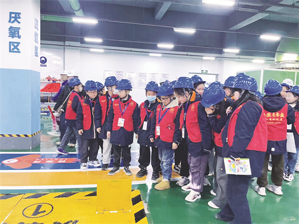 为让学生记者直观了解地埋式的污水处理的各项环节,张叔叔带领大家进入处理车间,在这里,他们亲眼见证了污水从浑浊到清澈的神奇变化。经过一系列的设备处理,当看见浑浊的生活污水最后变成清澈干净的水排入南淝河,学生记者们不禁发出阵阵惊叹,深刻感受到了科技的力量和环保的意义。还有学生记者感叹道:“从污水变成清水真是太不容易了。今后,我们一定要用实际行动惜水护水,爱惜保护身边的环境。”
