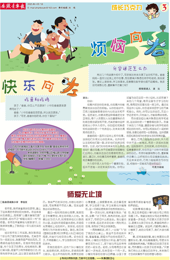 很高兴收到你的来信,也很高兴你能勇敢地说出自己的烦恼。从你的描述中,巧克力姐姐能感受到你内心的迷茫和不安。但是波比,你要清楚这种情绪是完全正常的,每个人在面对人生的重要转折点时都会感到紧张和不安,尤其是像你这样即将从小学升入初中。你的担忧和焦虑恰恰说明你是一个有责任心、对未来充满期待的孩子。