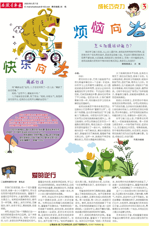 读完你的分享,巧克力姐姐忍不住想先隔着屏幕给你一个击掌!听起来,你在学习上的天赋可太耀眼啦,幼儿园起就被老师各种夸赞,这足以证明你有着超强的学习本领呢!不过运动方面的短板,尤其是跳绳这件事,确实给你带来了不少烦恼。但是没关系,让我们像探索新大陆一样,用你擅长的学习思维来解锁运动潜能吧。