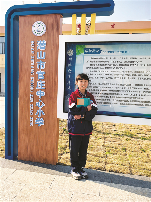 她就是我们今天的主角:第十六届宋庆龄奖学金获得者,就读于潜山市官庄中心小学的周梓欣同学,一个聪明、活泼、开朗的小女孩。
