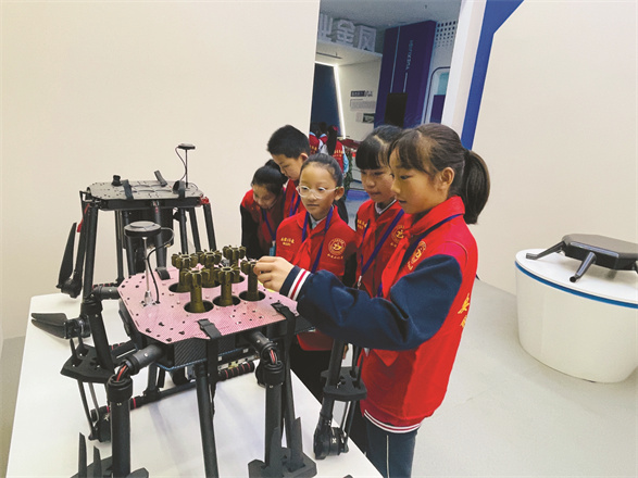 除了无人机,讲解员蔡阿姨还给大家介绍了航空模型、水面航天器等的构造和细节,学生记者们仔细聆听每一个细节,眼中闪烁着对科技的无限向往。“这次参观使我深受感触,虽然看到的只是小小的无人机,但它代表着科技在进步,祖国在发展,我们的国家日渐强盛。”学生记者王淑蕾说。