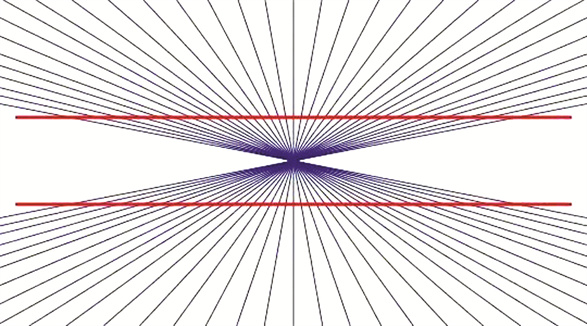 两个绿色的圆,看上去右侧的要大些,其实一样大。 两条红色的平行线,在特定的背景下,感觉中间鼓起来了。 外框都一样大,但内部笔画越多,感觉外框越大了。 上述的这些错觉,都是由于参照物不同而造成的。太阳在地平线附近时,由于是和建筑物、树木等作对比,所以感觉要大些;到了天空中,没有了参照物,就感觉太阳像是变小了。